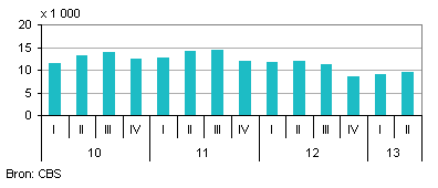 Het aantal faillissementen bleef in het tweede kwartaal onverminderd hoog: in totaal gingen er 202 detaillisten failliet. Hiermee kwam de teller voor de eerste helft van 2013 te staan op 425. Sinds de start van de publicatie over het aantal faillissementen in de detailhandel in 1993 hebben in een half jaar tijd nog nooit zoveel detailhandelaren hun deuren moeten sluiten. Het vorige recordaantal, uit de eerste helft van 2012, was 411 faillissementen.