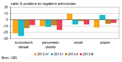 De architecten en ingenieurs zijn voor het derde kwartaal van 2013 nog altijd overwegend pessimistisch gestemd over het economisch klimaat. Wel is het aantal pessimistisch gestemden voor het tweede kwartaal op rij afgenomen. Per saldo 9 procent verwacht een verdere verslechtering van het economisch klimaat, een kleinere groep dan de voorgaande kwartalen.