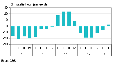 In het tweede kwartaal van 2013 werden bijna 96 duizend nieuwe personenauto’s verkocht, tegenover 165 duizend in het tweede kwartaal van 2012; een daling van 42 procent. Dit heeft vooral te maken met het feit dat in juli 2012 strengere bijtellingsregels ingevoerd werden. Ook werden de bpm-grenzen aangepast. Deze maatregelen hebben ertoe geleid dat er een verschuiving heeft plaatsgevonden van de verkoop van auto’s van juli 2012 naar eerdere maanden in dat jaar.