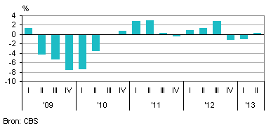 De omzet van de zakelijke dienstverleners is in het tweede kwartaal 0,3 procent hoger dan in dezelfde periode een jaar eerder. Deze kleine toename volgt op twee kwartalen waarin de omzet afnam. In de eerste helft van 2013 is er sprake van een omzetdaling van gemiddeld 0,4 procent. Een jaar eerder nam de omzet met gemiddeld 1 procent toe in de eerste helft van het jaar.