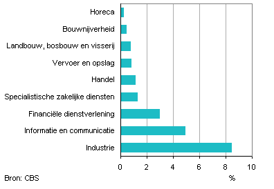 De industrie levert van oudsher de grootste bijdrage aan de R&D-uitgaven. Het is ook de sector met naar verhouding de meeste bedrijven met eigen R&D-activiteiten (ruim 8 procent). De industrie is verantwoordelijk voor 58 procent van de totale R&D-uitgaven.