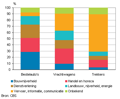 Bestelauto’s zijn bedoeld voor het vervoeren van lading tot 2 000 kg. Ruim de helft van de 817 duizend bedrijfsbestelauto’s wordt gebruikt in de bouw en in de handel en horeca, waaronder de groot- en detailhandel. Vrachtauto’s en trekkers zijn ingericht voor grotere ladingen, waarbij trekkers vooral worden ingezet voor langere (internationale) ritten. De meeste trekkers zijn dan ook in het bezit van transportbedrijven.