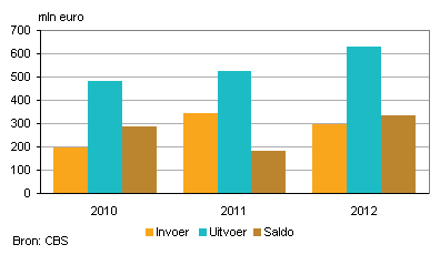 De uitvoer naar Denemarken is in 2012 met 2 procent gestegen tot 5,3 miljard euro. De twee voorgaande jaren steeg de uitvoer nog met respectievelijk 16 en 10 procent. Ook de invoer steeg minder hard; die was 4 procent in 2012 en 21 procent in 2011. Het overschot op de handelsbalans bleef met 1,8 miljard euro nagenoeg gelijk aan 2011.