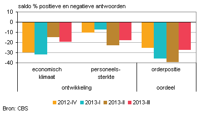 Over de orderpositie waren de ondernemers aan het eind van het derde kwartaal nog steeds zeer negatief maar wel iets minder dan vorig kwartaal. Per saldo vond 28 procent deze (te) klein.