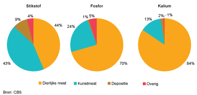 De totale aanvoer van stikstof en fosfor op landbouwgrond bedraagt in 2011 86 procent respectievelijk 78 procent van de totale aanvoer op Nederlandse bodems. Dit is een lichte daling ten opzichte van 1990, toen het aandeel naar de landbouw voor beide mineralen nog 90 procent bedroeg. De fosforaanvoer naar de landbouw is de laatste jaren harder gedaald dan de stikstofaanvoer.