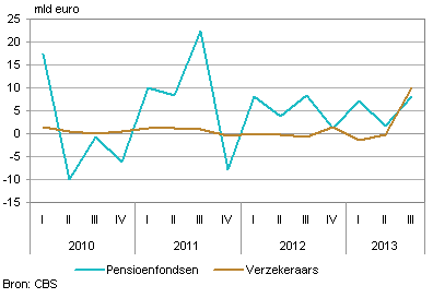 In het derde kwartaal van 2013 hebben verzekeraars 9,9 miljard euro gestoken in Nederlandse beleggingsinstellingen. Enkele verzekeraars hebben beleggingsinstellingen opgericht, en eigen beleggingen in vooral obligaties daarin ondergebracht. Een soortgelijke omzetting wordt sinds 2009 ook toegepast door enkele pensioenfondsen. Door het bundelen van te beheren vermogens kunnen door pensioenfondsen en verzekeraars efficiencyvoordelen worden behaald. Voor de samenstelling van de balans van verzekeraars en pensioenfondsen zoals opgesteld voor de Nationale Rekeningen betekenen deze acties dat aandelen of obligaties worden omgezet in participaties in beleggingsinstellingen. Dit kan de indruk wekken dat er risicovoller wordt belegd. Doordat de beleggingsinstellingen echter de activa overnemen van de verzekeraars en pensioenfondsen verandert het risicoprofiel van de beleggingen niet.