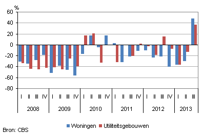 De bouwsom van de ontwerpopdrachten voor woningen steeg in het derde kwartaal van 2013 met bijna 50 procent. Bij de nieuwbouw van woningen bedroeg de stijging ruim 47 procent, de opdrachten voor renovatie van woningen namen met 63 procent toe.