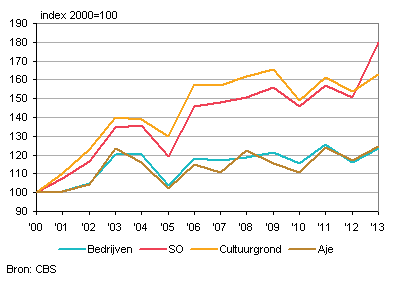 Vanaf 2000 is het aantal akkerbouwbedrijven met 18 procent gedaald tot 12 duizend bedrijven in 2013. In dat jaar hadden de akkerbouwbedrijven 464 duizend hectare landbouwgrond in gebruik, wat 3,6 procent minder is dan in 2000. In 2013 werd met één arbeidsjaareenheid 29 hectare grond bewerkt en 92 duizend euro standaardopbrengst gegenereerd. In 2000 was dit nog 25 hectare grond en 63 duizend euro standaardopbrengst. De hogere productiviteit leidde bij de akkerbouwers tot een 47 procent hogere standaardopbrengst per arbeidsjaar. De standaardopbrengst van de totale akkerbouwsector is in de periode 2000-2013 met 20 procent toegenomen.