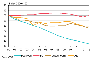 Vanaf 2000 is het aantal glastuinbouwbedrijven met 56 procent gedaald tot 3,6 duizend bedrijven in 2013. In dat jaar hadden de glastuinbouwbedrijven 13 duizend hectare landbouwgrond in gebruik, wat 25 procent minder is dan in 2000. In 2013 werd met één arbeidsjaareenheid 0,34 hectare grond bewerkt en 129 duizend euro standaardopbrengst gegenereerd. In 2000 was dit nog 0,36 hectare grond en 102 duizend euro standaardopbrengst. De hogere productiviteit leidde bij de glastuinders tot een 27 procent hogere standaardopbrengst per arbeidsjaar. De standaardopbrengst van de totale glastuinbouwsector is in de periode 2000-2013 met 0,10 procent toegenomen.