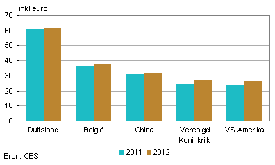 China staat, net zoals in 2011, op de 3e plaats voor wat betreft belangrijkste importlanden. De top-5 is in 2012 ongewijzigd in vergelijking met 2011. Uit deze 5 landen kwam bijna 48 procent van de totale invoer. In 2011 was dit precies 48 procent.