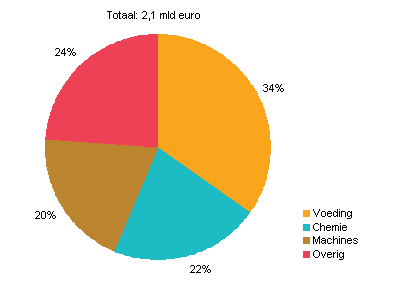 Ruim een derde van de uitvoer naar Griekenland is voeding. Hiermee was 0,7 miljard euro gemoeid in 2012 (-3 procent). De belangrijkste exportproducten binnen de voeding zijn vlees en zuivel. Terwijl de uitvoer van vlees met 2 procent steeg, daalde de zuivelexport met 6 procent. Daarnaast daalde ook de uitvoer van belangrijke exportproducten zoals chemie (-8 procent) en machines (-9 procent).