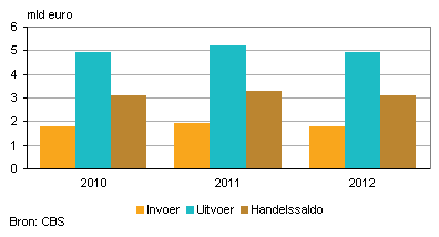 In 2012 werd er voor 1,8 miljard euro aan goederen uit Oostenrijk ingevoerd. Dat is 3 procent minder dan in 2011. De uitvoer naar Oostenrijk daalde met ruim 4 procent naar 4,9 miljard euro. Hierdoor nam het overschot op de goederenhandelsbalans iets af tot 3,1 miljard euro.
