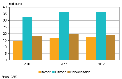 In 2012 heeft Nederland voor 36,2 miljard euro aan goederen aan Frankrijk geleverd. Dit is net zo veel als in 2011. De invoer steeg in 2012 met 4 procent, naar 17,4 miljard euro. Er werden vooral meer aardolieproducten ingevoerd. Het overschot op de handelsbalans nam iets af tot 18,8 miljard euro.