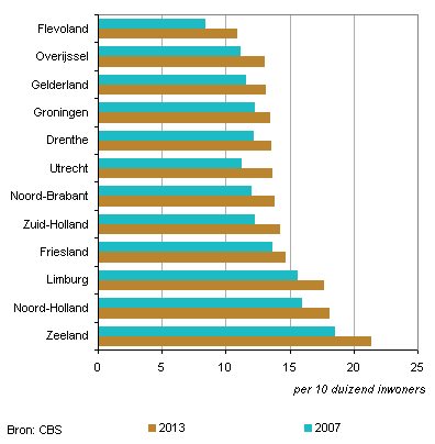 Hoewel in het gehele land het aantal restaurants en snackbars toeneemt, zijn er wel regionale verschillen in vestigingdichtheid. In Zuid-Holland en Noord-Holland is het aanbod van eetgelegenheden het grootst en de laatste jaren bovendien het meest gestegen. Deze provincies hebben ook de meeste inwoners. In Friesland, Groningen en Drenthe is de toename van het aantal eetgelegenheden een stuk kleiner dan in de rest van het land. Zeeland heeft de meeste restaurants per inwoner, gevolgd door Noord-Holland. Flevoland moet het, absoluut en per inwoner, met de minste restaurants doen.