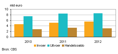 De invoer van goederen uit Polen is in 2012 met 7 procent gestegen tot 5,5 miljard euro. De uitvoer steeg met 2 procent tot 8,5 miljard euro. Het is het derde jaar op rij dat zowel de invoer als uitvoer zijn toegenomen. Het overschot op de handelsbalans daalde licht naar 3,1 miljard euro.