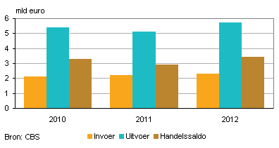 In 2012 importeerde Nederland voor 2,3 miljard euro aan goederen uit Zwitserland. Dit is 7 procent meer dan in 2011. Het is voor het derde jaar op rij dat er meer goederen uit Zwitserland werden ingevoerd. De uitvoer naar Zwitserland steeg in 2012 met 12 procent tot 5,7 miljard euro. In 2011 noteerde ons land nog een exportdaling van 5 procent. Het overschot op de handelsbalans steeg naar 3,4 miljard euro.