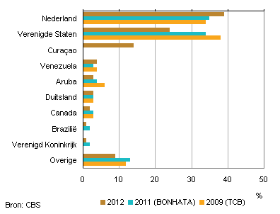 Inkomende toeristen per vliegtuig op Bonaire naar land van herkomst