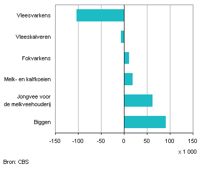 In april 2014 telde Nederland 12,2 miljoen varkens, ruim duizend minder dan een jaar eerder. Het aantal biggen steeg met bijna 2 procent tot 5,4 miljoen dieren. Daarentegen daalde het aantal vleesvarkens met bijna 2 procent tot 5,7 miljoen dieren. Het aantal fokvarkens steeg met bijna 1 procent naar 1,2 miljoen dieren.