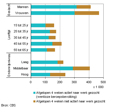Zoekt actief naar werk (afgelopen vier weken) (Werkloze beroepsbevolking)