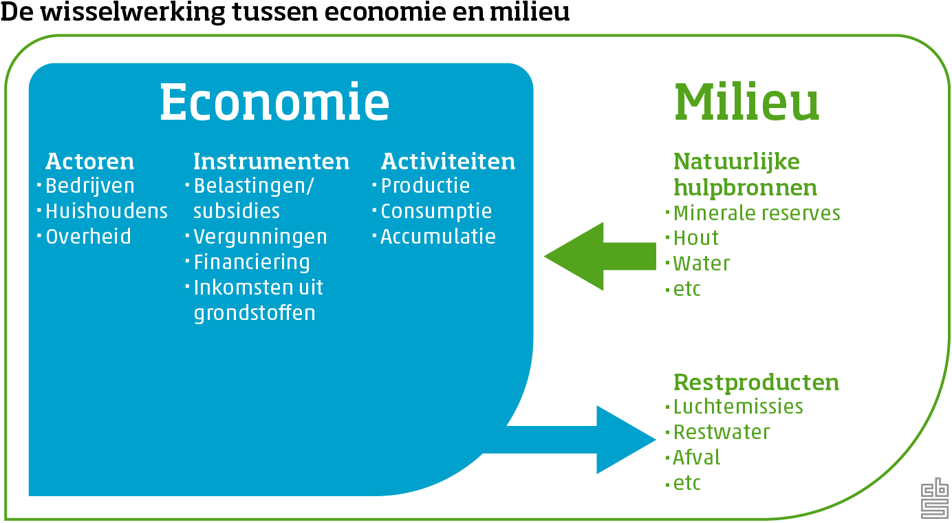 Milieu en economie zijn onlosmakelijk met elkaar verbonden. Economische groei kan ten koste gaan van het milieu door bijvoorbeeld uitputting van grondstoffen en het verlies aan milieukwaliteit. Grondstoffen als aardolie, aardgas, maar ook biologische hulpbronnen als vis en hout worden aan het milieu onttrokken. Daarnaast brengen productie en consumptie van goederen en diensten verschillende typen milieudruk met zich mee, zoals emissies naar water en lucht.