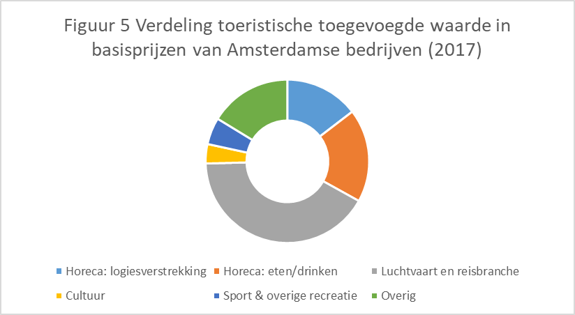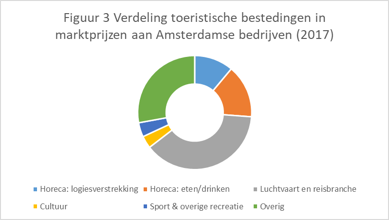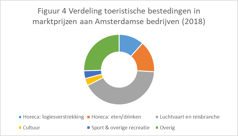 Dit rapport beschrijft daarom de toeristische bestedingen die zijn gedaan bij bedrijven10), die gevestigd zijn in de gemeente Amsterdam. Als er in dit onderzoek wordt gesproken over toerisme in Amsterdam wordt dus gedoeld op bestedingen bij bedrijven, die gevestigd zijn in Amsterdam en de toegevoegde waarde die hieruit voortvloeit. Dit is meer dan alleen de bestedingen van toeristen tijdens hun verblijf in de gemeente Amsterdam en dus meer dan alleen bestedingen van toeristen die fysiek aanwezig zijn in Amsterdam. Dit betekent ook dat als de reisbureaus en platforms gevestigd zijn in Amsterdam, de opbrengsten ook worden toegerekend aan Amsterdam, ook al zijn de toeristen niet in Amsterdam. Dit geldt vooral voor de reisbranche; met alle andere soorten toerisme ( denk aan bezoek aan de horeca) zijn de toeristen meestal daadwerkelijk ín Amsterdam.