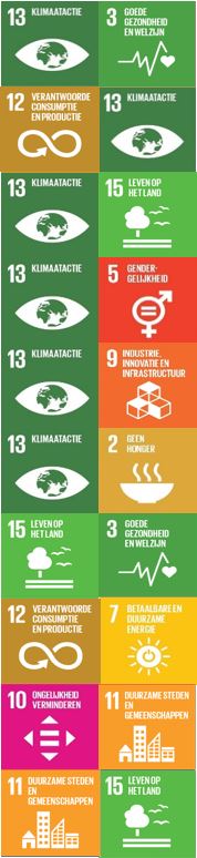 Deze figuur laat zien dat er sprake is van relatief grote potentiële afruileffecten binnen SDG 12. De grootste mogelijke synergie effecten binnen SDG’s treden op bij SDG 13 en 15, en in iets minder sterke mate bij SDG’s 2,3, 10, 11 en 12.