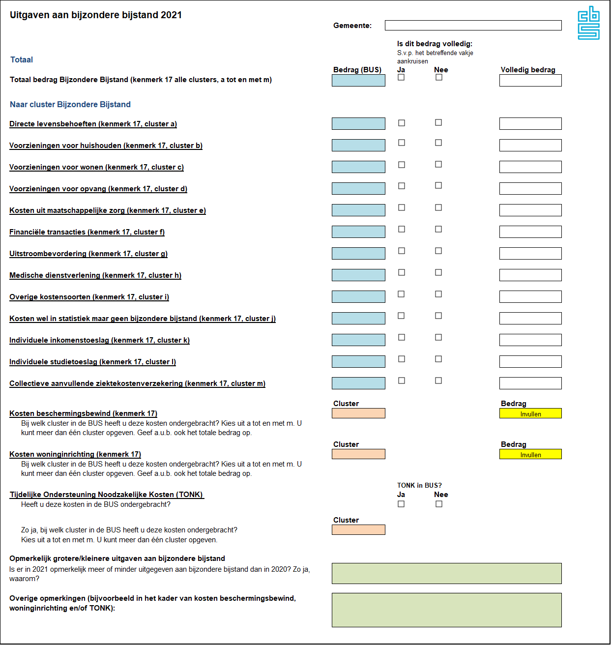 Publicatiedatum: 28-9-2023 14:37 Extra uitvraag Bijzondere Bijstand 2021 Bijlage Enquête Bijzondere bijstand 2021