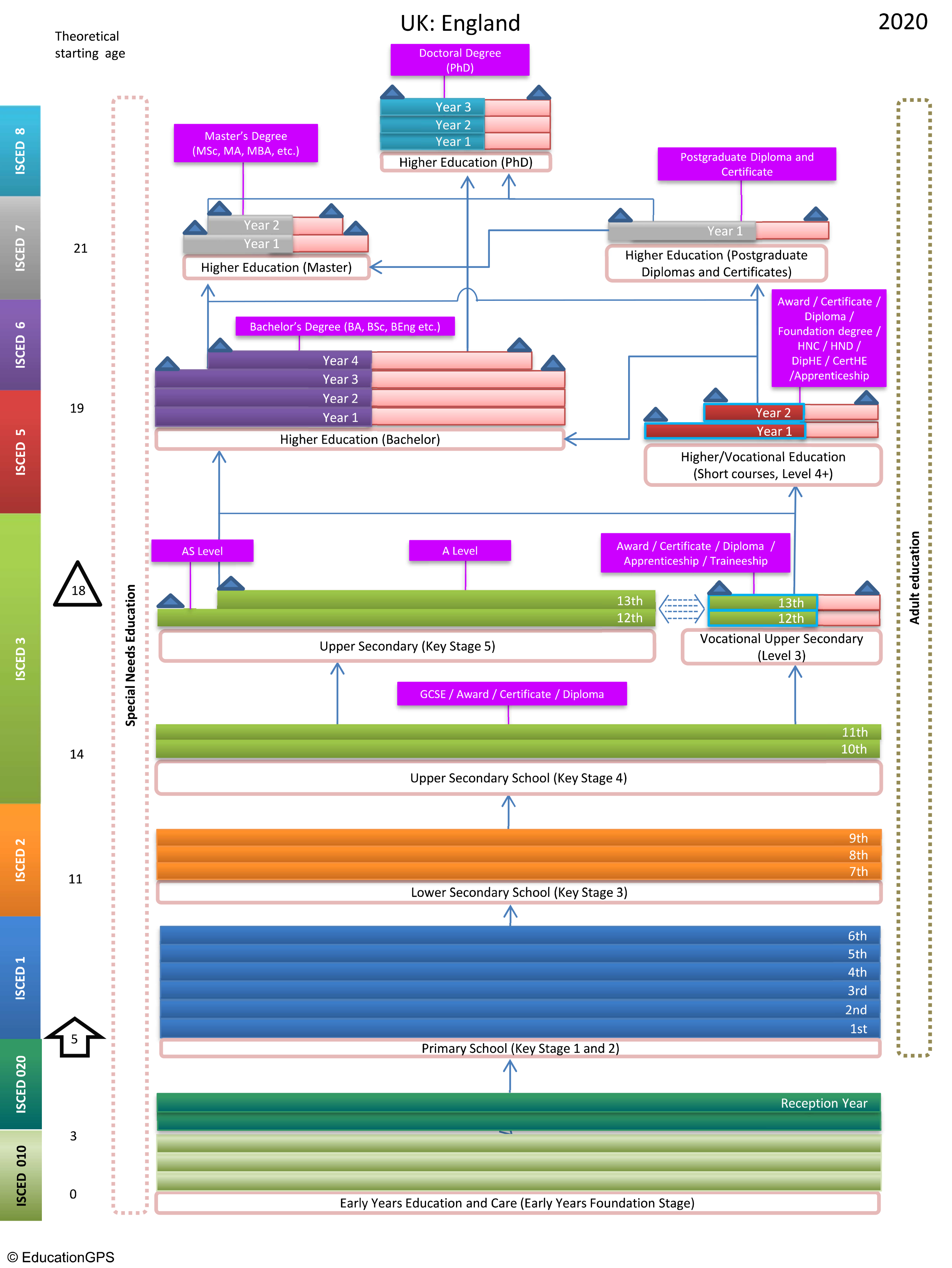 Binnen de Engelse statistiek wordt voor de indeling van het onderwijsniveau vaak gesproken over de eerder genoemde Level 1 t/m Level 5. Dit wijkt dus wat af van de terminologie die in Nederland wordt gebruikt in statistieken met betrekking tot het onderwijsniveau van de Nederlandse bevolking maar maakt dus wel gebruik van een duidelijke hiërarchie. Zie: https://www.ons.gov.uk/visualisations/censusworkforcequalifications/