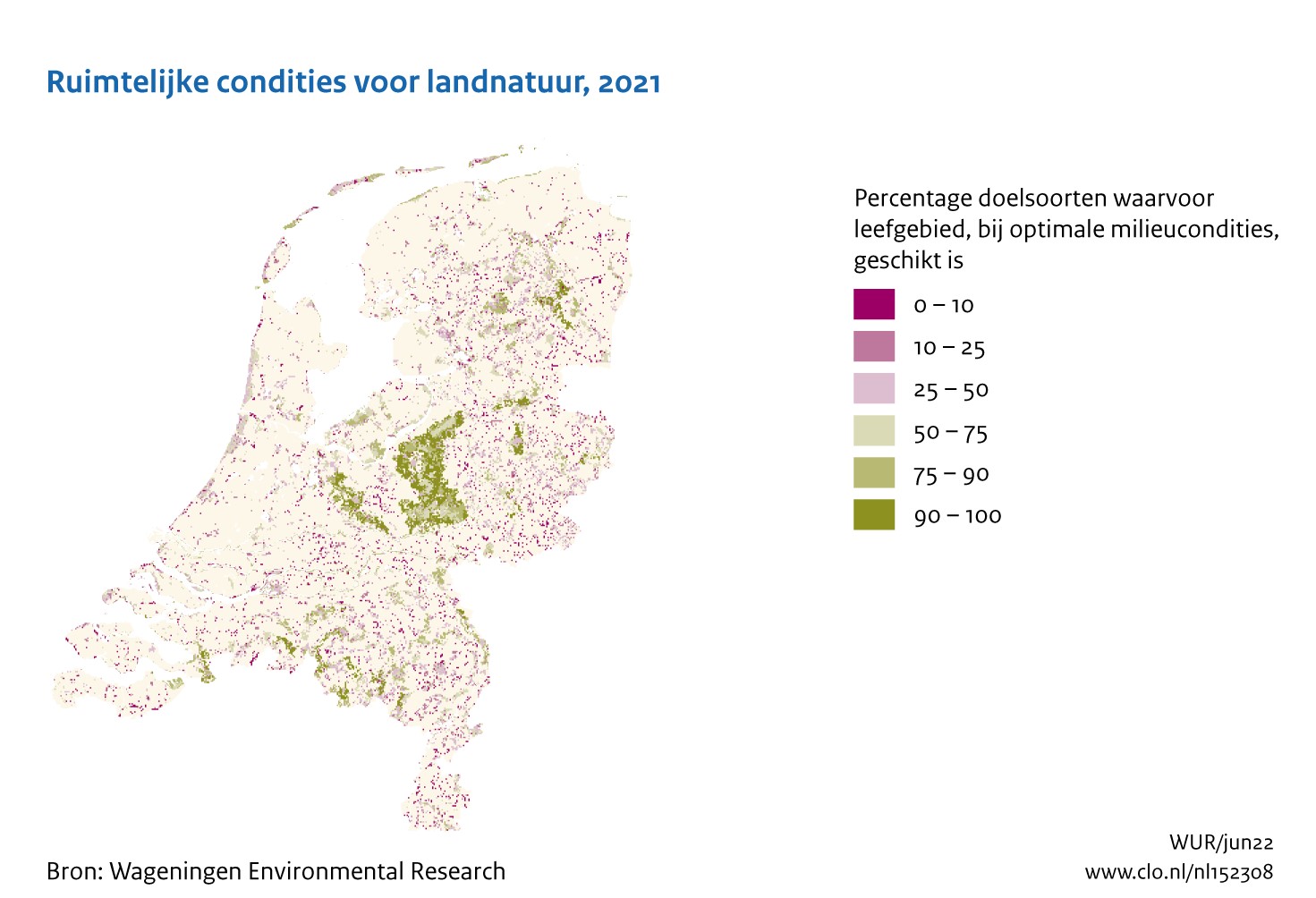 Figuur 3. 4. Voorbeeld van een ruimtelijke presentatie van de condities van de natuur (CBS et al., 2024c).