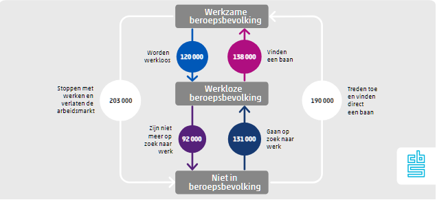 | Werkzame beroepsbevolking | Werkloze beroepsbevolking | Worden werkloos | 120 0000 |
