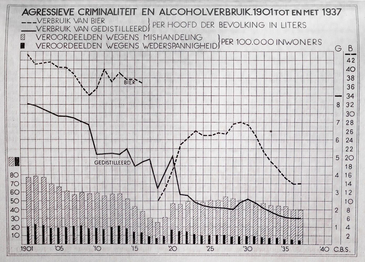 Zo’n slimme oplossing presenteerde het CBS in 1919 toen het de opdracht kreeg van het ministerie van Binnenlandse Zaken om de verbruiksstatistiek (consumptie van gedistilleerd per gemeente) te redden. De gegevens uit deze statistiek: het verbruik per hoofd van de bij de gemeente ingeschreven bevolking, waren niet heel betrouwbaar. Een reden was dat de registratie van de basisgegevens – het vervoer van een minimumhoeveelheid gedistilleerd, gewettigd door het invullen van een zogeheten geleidebiljet – gebrekkig was. Drankhandelaren, tappers, slijters en consumenten ontdoken de controles op het vervoer op grote schaal. Kleine hoeveelheden mochten bovendien zonder het invullen van een formulier worden meegenomen en elders worden genuttigd. Die hoeveelheden bleven dan geboekt in de gemeente.